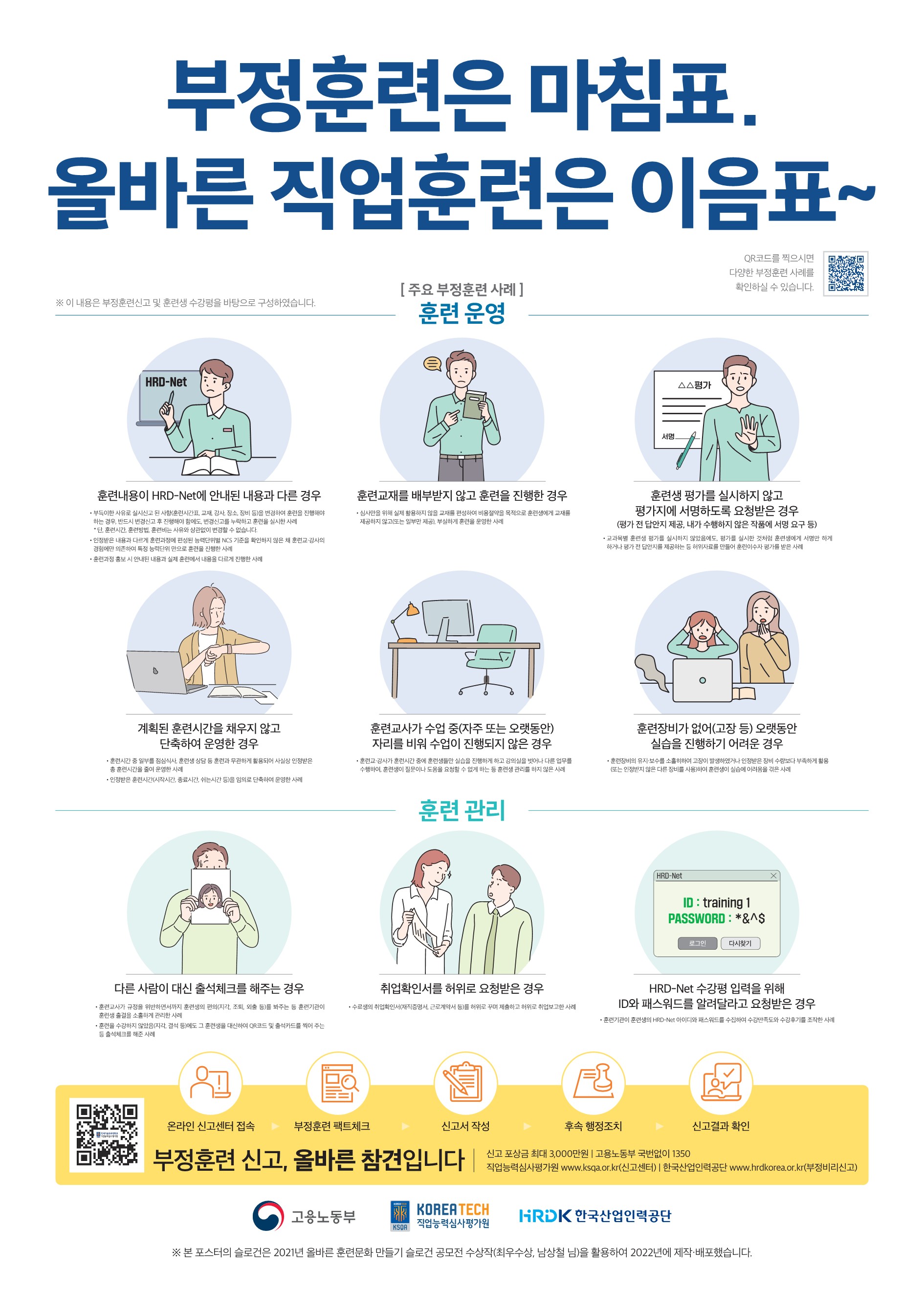 직업능력심사평가원 부정훈련관리센터의 2024년 1분기 부정훈련 예방 포스터 공유드립니다.